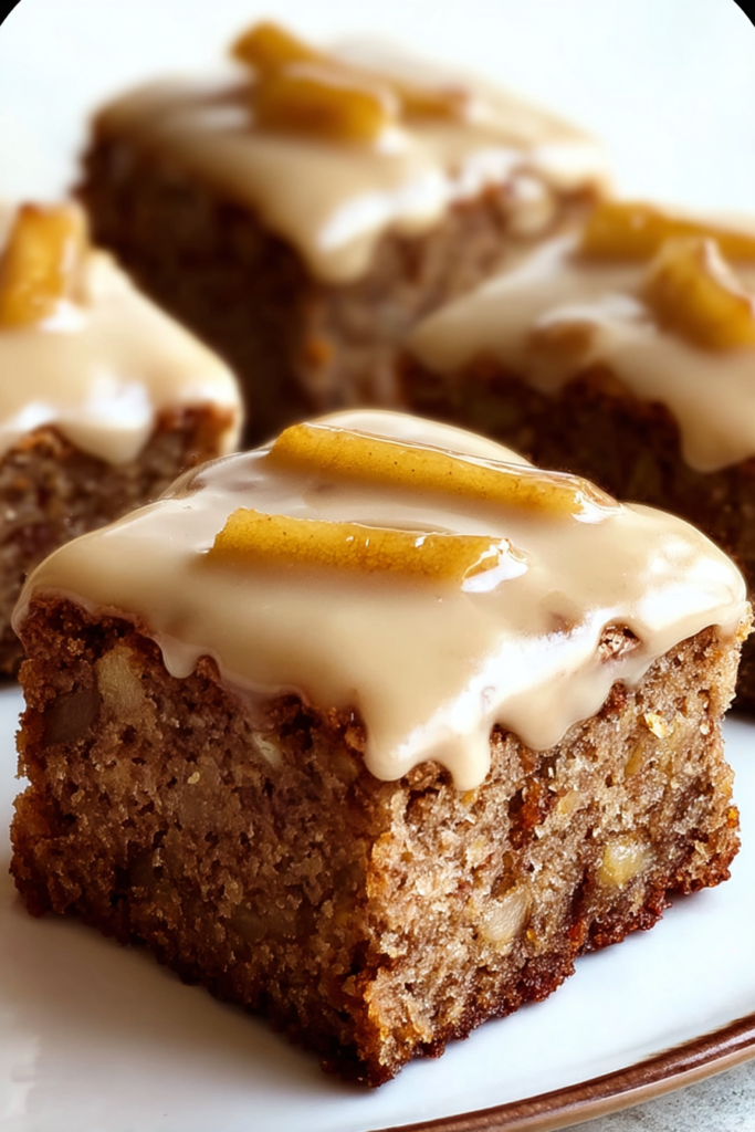 Apple Brownies with Maple Glaze represent the successful marriage of fruit-forward baking with comforting bar cookie convenience, creating something that feels both wholesome and indulgent. This recipe appeals particularly to those seeking autumn-inspired desserts, bakers wanting foolproof recipes with minimal technique required, or anyone craving the nostalgic combination of apples and warm spices that evokes childhood memories and seasonal traditions. The “brownie” designation cleverly references the bars’ dense, chewy texture while the fresh apples and maple glaze distinguish these from chocolate brownies entirely, creating something unique in the bar cookie category. The one-bowl preparation removes barriers of complicated technique or extensive cleanup, making these accessible to novice bakers while the sophisticated flavor profile and elegant maple glaze satisfy more experienced palates. The room-temperature stability and make-ahead capability make these particularly valuable for entertaining, gifting, or meal planning when you need desserts that won’t require last-minute preparation or refrigeration logistics. While the 280-320 calorie estimate per bar represents sweet indulgence, the inclusion of fresh fruit, the relatively modest serving size, and the occasional-treat nature of desserts appropriately frame these as celebration food rather than everyday fare. For those seeking lighter versions, consider reducing butter to 3/4 cup, using half white whole wheat flour, or decreasing the sugar slightly; though these modifications will alter the tender, moist texture that defines these bars’ appeal. Ultimately, this recipe deserves a permanent place in fall baking collections as proof that impressive, delicious desserts needn’t require complicated techniques or exotic ingredients—sometimes the best baking celebrates seasonal produce, honors classic flavor combinations, and delivers reliable results that bring smiles to everyone around the table.