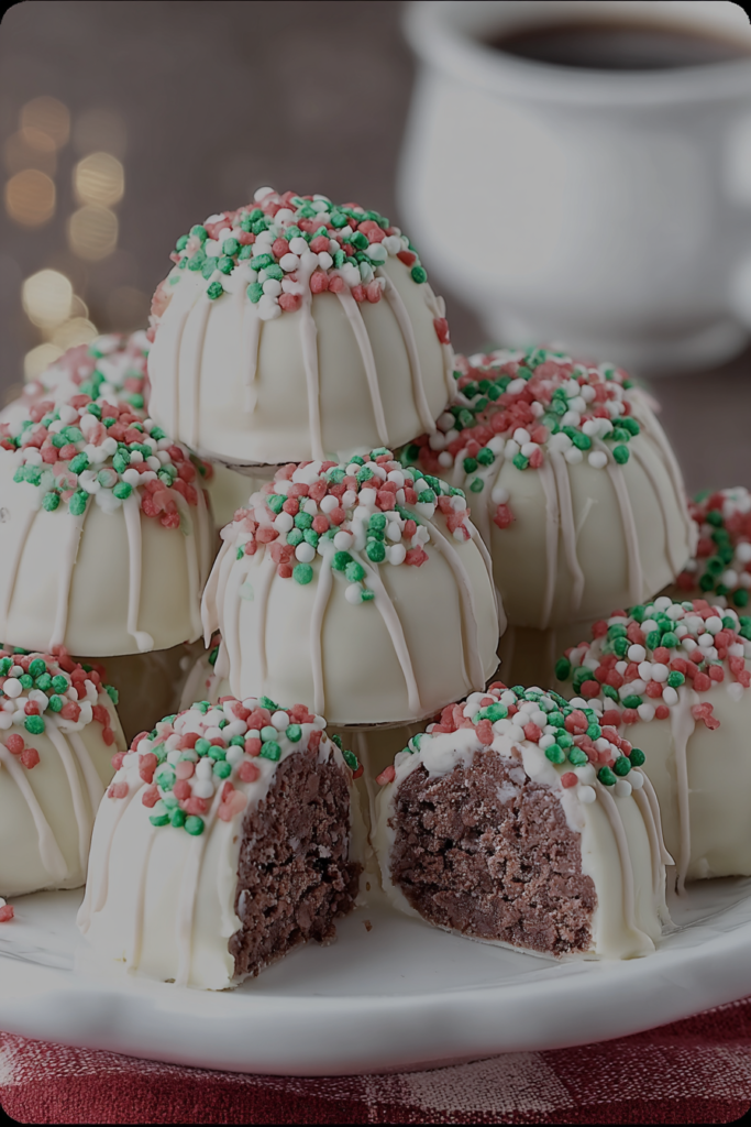 Add festive decoration Immediately after dipping each truffle (while the chocolate is still wet), sprinkle generously with holiday sprinkles – red and green sprinkles, pearl sprinkles, edible glitter, or themed decorations. Press lightly so the decorations adhere to the chocolate. Work quickly as the chocolate sets fast, especially if the truffles are very cold.