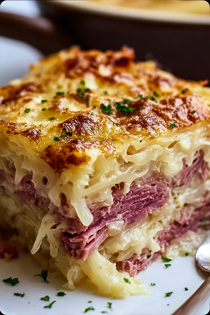 Classic Reuben Bake with Corned Beef, Sauerkraut & Swiss