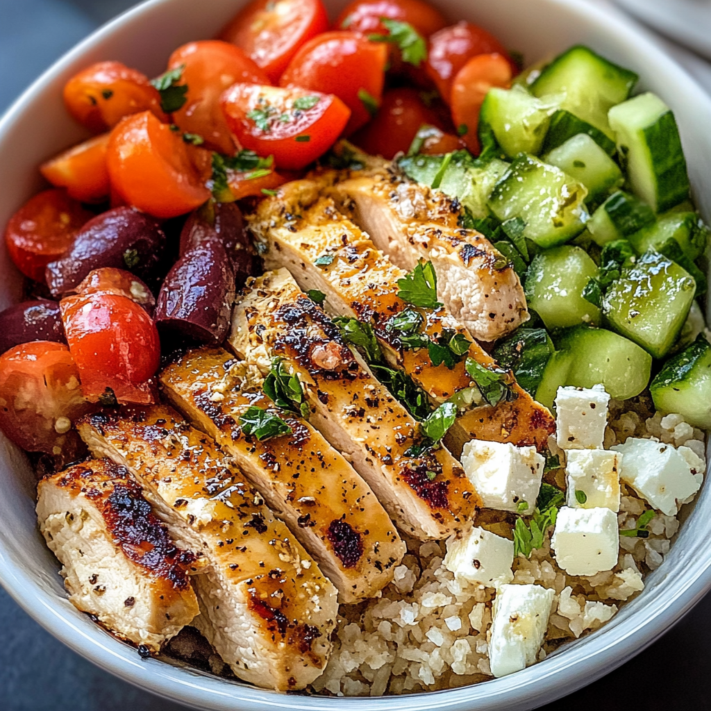 A vibrant and nutritious meal that brings together the best of Mediterranean flavors while keeping health and wellness in mind. These Greek chicken bowls are perfect for meal prep and offer a balanced combination of lean protein, whole grains, and fresh vegetables.