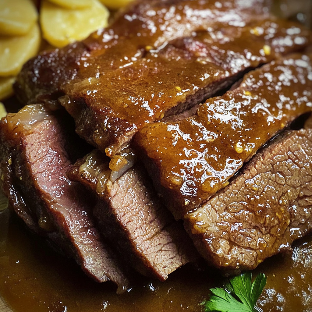 This tender, glazed beef recipe combines savory and sweet flavors for a delicious main dish that’s perfect for family dinners or special occasions. The slow cooking process ensures the meat becomes tender and flavorful, while the brown sugar honey glaze adds a delectable finishing touch.